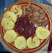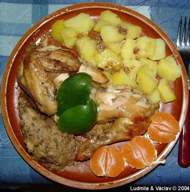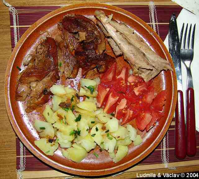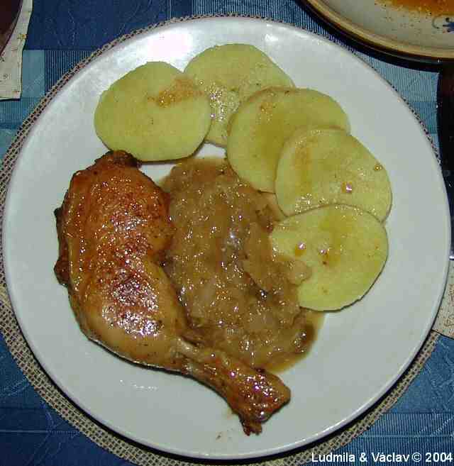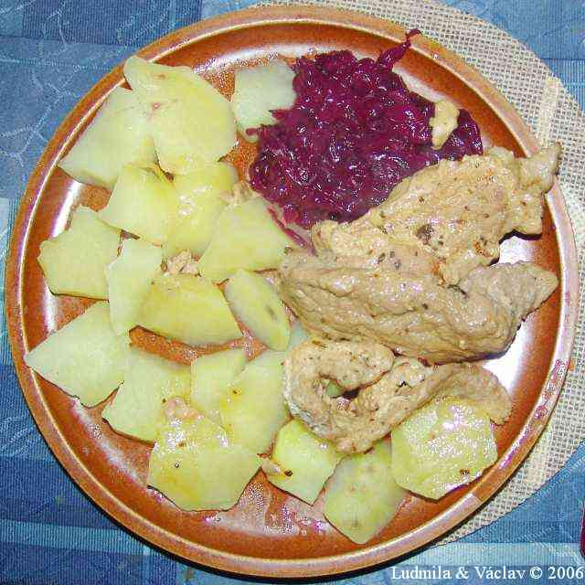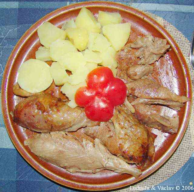 | Krůtí pečeně kněžny Ludmily s bramborem a s oblohou.