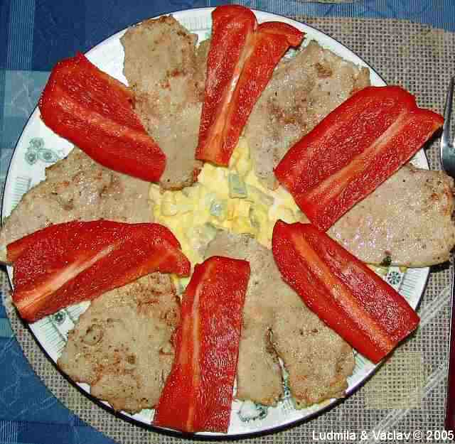| Krůtí prsíčka s paprikou a vaječným salátem.