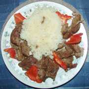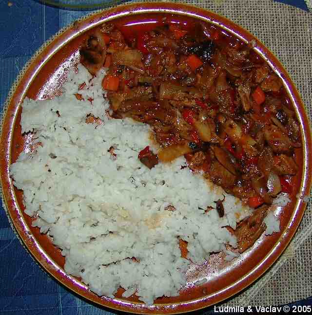 | Krůta s rýží a s paprikou.