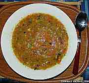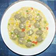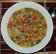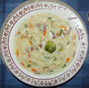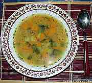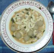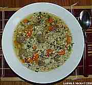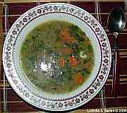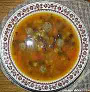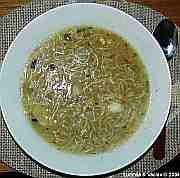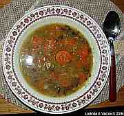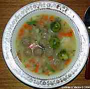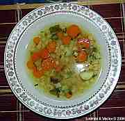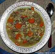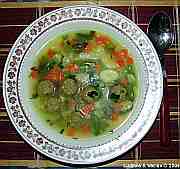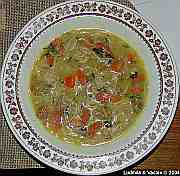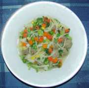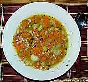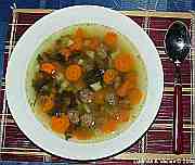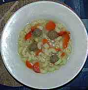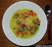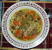 | Těstovinová polévka s mrkví a s játrovými knedlíčky.
